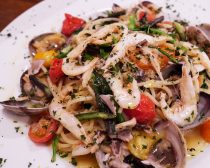 3月~5月にかけて旬を迎える「ホタルイカ」。中でも富山湾産のものは、他県産に比べてまるまると大きいのが特徴。さらに、漁場が近いので鮮度抜群らしいんです。まずはこの格別なホタルイカと、たっぷり野菜を合わせたサラダをいただきます。 ホタルイカと農園やさいのサラダ仕立て「ホタルイカと農園やさいのサラダ仕立て」   ぷりっぷりのホタルイカと、20種類以上のこだわり野菜が、美しい絵画のように彩られた一皿。家では難しい野菜の組み合わせと、ホタルイカの新鮮さを存分に楽しむことができ、これを食べるためにお店に通いたくなるほどのやみつき感が伴います。