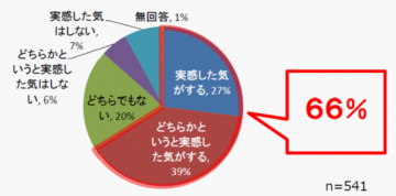 ヨガ終了後、「サンプルを試して何らかの効果を実感しましたか?」と尋ねたところ、「実感」または「どちらかというと実感」と回答した方は66%。