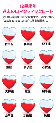 今週末、ロマンティックな時間は巡ってくるのでしょうか? アメリカで大人気の占サイトの日本語版「Tarot.com Japan」から、今週末の恋愛運をお届けします。星座ごとの恋愛運がわかるロマンティックなハートレート付きです!※こちらの記事に含まれる日付はアメリカ時間を基準にしています。日本では同日の午後から翌日の午後にあたります。 ⇒【12星座別週末のロマンティックレート】はこちら