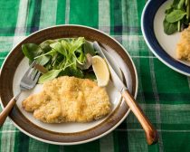 揚げなくてもサクッとジューシーなのは、オリーブオイルと粉チーズを混ぜたパン粉をたっぷりつけているから。揚げ物は食べたいけれど、作るのは面倒という人におすすめの一品です。ベビーリーフやレモンを添えてどうぞ。