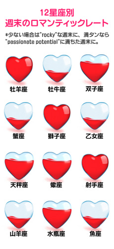 今週末、ロマンティックな時間は巡ってくるのでしょうか? アメリカで大人気の占サイトの日本語版「Tarot.com Japan」から、今週末の恋愛運をお届けします。星座ごとの恋愛運がわかるロマンティックなハートレート付きです! ※こちらの記事に含まれる日付はアメリカ時間を基準にしています。日本では同日の午後から翌日の午後にあたります。 ⇒【12星座別週末のロマンティックレート】はこちら<記事提供元サイト:Tarot.com Japan> Tarot.comはアメリカをはじめ世界中で愛される占いサイト。毎日の運勢や毎月の星占いから簡単にできる本格タロット占いまで、全て無料で楽しめます!