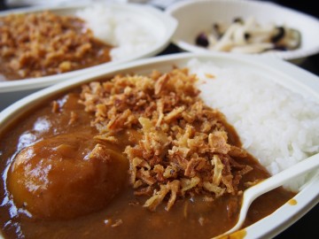 ラフテーもたまねぎも、口に入れた瞬間にほろりと崩れてしまうほどとっても柔らかく、カレー自体もコクのあるしっかりとした味わい。なお、MAJINさんの料理の腕には定評があり、この日も「MAZINさんのカレーが食べたくて」参加した人の姿もあったほど。ふだんはめったに米物を提供しないとのことで、彼のフードファンにとっても貴重な一杯だったようです。