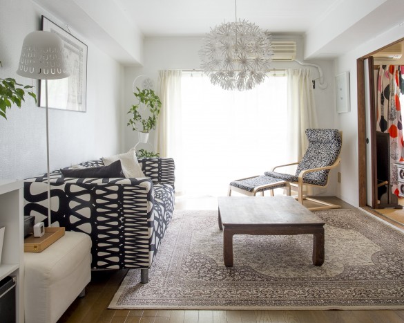 次の家は、IKEA 港北でコミュニケーション&インテリアデザイン部門を担当しているテドルストホルスト麻理絵さん。オランダ人の夫と娘の3人で住む彼女の家は、3DKのマンション(約90㎡)で、モダンなイケア家具と日本独自の箪笥やちゃぶ台を組み合わせて部屋つくりを行っています。