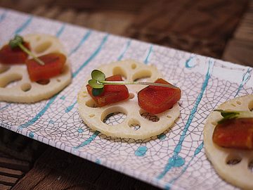 みずみずしくシャキシャキとした歯ごたえが魅力の「新レンコン」が出回ります。レンコンは、胃壁の保護や貧血予防、美容効果も絶大の秋野菜。目の疲れに効くビタミンAを含む「カラスミ」を合わせました。