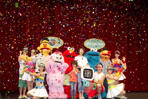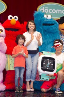 キャンペーン開始に先駆け、7月17日(金)に行われた記念セレモニーには、お母さん代表として東尾理子さん、キッズ代表として花田海里くんがゲストとして登場。会場にはセサミストリートの仲間たちもお祝いに駆け付けました。