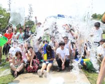 二時間半ほどの撮影タイムのラストには、バケツで大量の水を浴びせられながらの集合写真を撮影! 全身ずぶ濡れになった参加者たちの笑顔が、眩しく弾けていました。