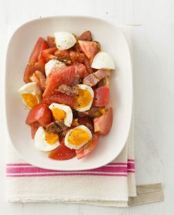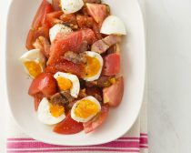 5分でできる! ゆで卵とカリカリベーコンのトマトサラダ