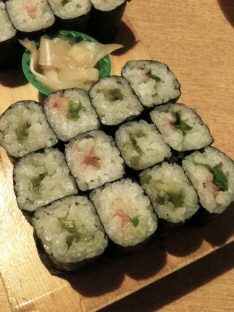 鼻の奥から突き抜ける強烈な刺激で頭がくらくら……。これ、わさび巻じゃないですか。どうやら辛さが頭から鼻にぬける時に発する言葉にならない言葉から命名されたようなのです。ウマイこと言いやがって……。涙目になりながらも、精一杯の強がりの筆者。