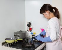 こちらも最初に油を削り取ります。次に、油汚れ用洗剤をスプレーした雑巾で拭き掃除を。
