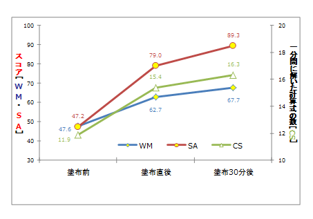 ※3本のグラフは、3つの能力を試すテストの種類=WM(ワーキングメモリ)、SA(選択的注意)、CS(計算速度)