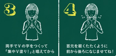 実験で行った「首元Vゾーンに塗る」とは、以下のような塗り方です。首元ですからね、まちがえて別のVゾーンに塗らないでね!