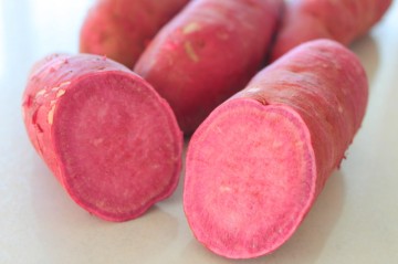 ※各社から紫芋焼酎が登場。サツマイモの中でも作付面積が1%程度しかないレアな紫芋を使っている