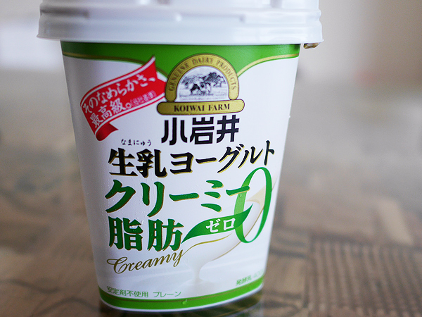 まずひとつ目。最も単純な方法ですが、「おいしい脂肪ゼロを探す」ということ。はい、そうです、その期待にかなう商品を発見しました! それは、「小岩井ブランド」。このヨーグルト、本当にクリーミーでまろやか、他ブランドの生乳ヨーグルトを負かしてしまいそうなクオリティーに仕上がっています。