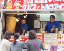 入場は無料。来場者は入場口で100円単位のチケット(返金可)を購入する仕組みです。今年の参加店舗は16店舗。期間中、来場者の投票により「No.1ケバブ部門」「イケメン店員部門」「サイドディッシュ部門」において各グランプリが決定します。
