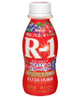 機能性ヨーグルトブームの火付け役となった「明治プロビオヨーグルトR-1」(明治乳業)のドリンクタイプ。商品名は、免疫力を高めてインフルエンザを予防するという「乳酸菌1073R-1株」に由来します。レギュラータイプに加え、今年10月からアセロラ&ブルーベリータイプを発売。アセロラとブルーベリーそれぞれの果汁が加わり、フルーツヨーグルトを食べてるような満足感。小腹が減ったときにも、良さそうです。