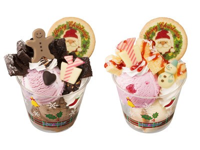 同じくアイスでは、サーティワンもクリスマスものを展開中。「クリスマスサンデー」は、好きなフレーバー2つを選んで、クリスマスっぽくデコレーションしてくれます。「クリスマスサンデー」は写真の2種類で、左から「クリスマスショコラ」「メリーメリーショートケーキ」