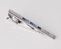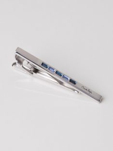 濃淡のブルーのスワロフスキーを並べたデザインがシンプルでかっこいい『Mila schon』のネクタイピン(税込8640円)。シンプルで小粋なデザインは年齢を問わずに身に着けることができます。