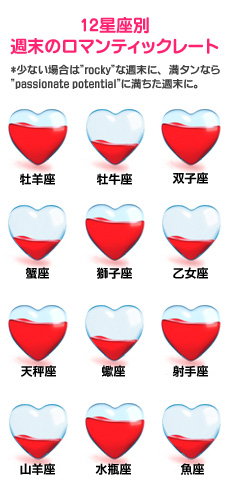 今週末、ロマンティックな時間は巡ってくるのでしょうか? アメリカで大人気の占サイトの日本語版「Tarot.com Japan」から、今週末の恋愛運をお届けします。星座ごとの恋愛運がわかるロマンティックなハートレート付きです!※こちらの記事に含まれる日付はアメリカ時間を基準にしています。日本では同日の午後から翌日の午後にあたります。 ⇒【12星座別週末のロマンティックレート】はこちら http://joshi-spa.jp/?attachment_id=438737 今週の恋愛はそう簡単にはいかないよう。でも、もしあなたに欲しい物を手に入れる意志があるなら、その報酬を得ることもありうるでしょう。その鍵はペースの速い「月」の利点を活かすこと。金曜日と土曜日は、牡羊座にある月のせいで怒りっぽくなり、感情的な対応をしがちです。あなたを激怒させそうな人とわざと一緒に過ごしてはいかがですか? 恋人とケンカすることになるかもしれませんが、その結果として甘く楽しい仲直りができるでしょう! 日曜日、月が今度は官能的で安定感のある牡牛座へと入ると、求めるものが「セクシー」な喜びより、むしろ長続きする喜びへと性格を変えていきそうです。 <記事提供元サイト:Tarot.com Japan> Tarot.comはアメリカをはじめ世界中で愛される占いサイト。毎日の運勢や毎月の星占いから簡単にできる本格タロット占いまで、全て無料で楽しめます!