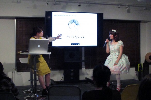 司会を務めたのは、『メンズ温泉』(BSジャパン)などさまざまな番組の構成作家として活躍する「めがねちゃん」。ゲストに『元カレ全員芸人あるある』(ラジオ日本)が人気の芸人「ロリィタ族。」を招いて、EDとはなんぞや、そして具体的にどう改善するのか、について、会場を訪れた女性たちにレクチャーしました。