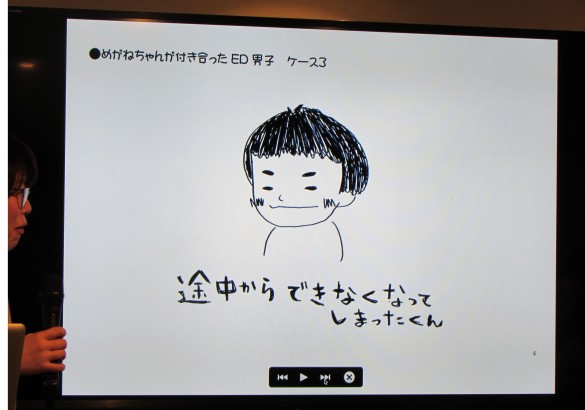 なぜ、めがねちゃんはEDに詳しいのか。何を隠そう、彼女は“元カレ3人がED”(しかも、最初の2人は連続)という過去を持っていたのです。「中折れくん(当時、35歳)」「たたないくん(当時、27歳)」「途中からできなくなってしまったくん(当時、29歳)」などがいたそうですが、特に3人目の彼は、めがねちゃんの「私のせいでできなくなったの?」という発言をきっかけに、言葉の暴力も始まったそう。「EDの彼にそのセリフは禁句ですよ!」とめがねちゃん。