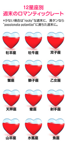 今週末、ロマンティックな時間は巡ってくるのでしょうか? アメリカで大人気の占サイトの日本語版「Tarot.com Japan」から、今週末の恋愛運をお届けします。星座ごとの恋愛運がわかるロマンティックなハートレート付きです!※こちらの記事に含まれる日付はアメリカ時間を基準にしています。日本では同日の午後から翌日の午後にあたります。 ⇒【12星座別週末のロマンティックレート】はこちら http://joshi-spa.jp/?attachment_id=465976 金曜日は、月が「人間関係」を大切にする天秤座にある影響で、お互いに相手を幸せにしようと気を使い過ぎてしまいそうです。デートですることさえ、なかなか決められません。万が一にも、相手が実は喜んでいないという選択をしたくないからです。その結果、2人ともストレスを感じたり、何もせずに家にいることになってしまうかも。ありがたいことに水星が天王星と豪華なセクタイルをつくると、別のアプローチから、恋愛に必要だと感じていることについて、話ができるようになります。そうすれば、残りの週末は夢を見ているかような時間を過ごせるでしょう。 太陽も繊細で夢見がちな魚座に金曜日に入ってきます。そうすると、グラマラスで心を揺さぶるような側面に光が当たるでしょう。今週末は愛する人と映画、劇、ミュージカルまたはコンサートに出かけると楽しめそうです。 土曜日に月は蠍座へ入り、月曜日いっぱいここに留まります。蠍座の力添えで、2人は互いの関係について話しにくいことや、至極プライベートなことでも、うまくコミュニケーションが取れるでしょう。さらに、水星が今度は天王星とセクタイルになって、もっとも言いにくい言葉も口に出せるように助けてくれます。日曜日までには、交わした会話のおかげで名案が次々と浮かびます。太陽が海王星を受け入れると、お互いが相手にとって愛らしくロマンティックなポジションへと戻っている事でしょう。 <記事提供元サイト:Tarot.com Japan> Tarot.comはアメリカをはじめ世界中で愛される占いサイト。毎日の運勢や毎月の星占いから簡単にできる本格タロット占いまで、全て無料で楽しめます!