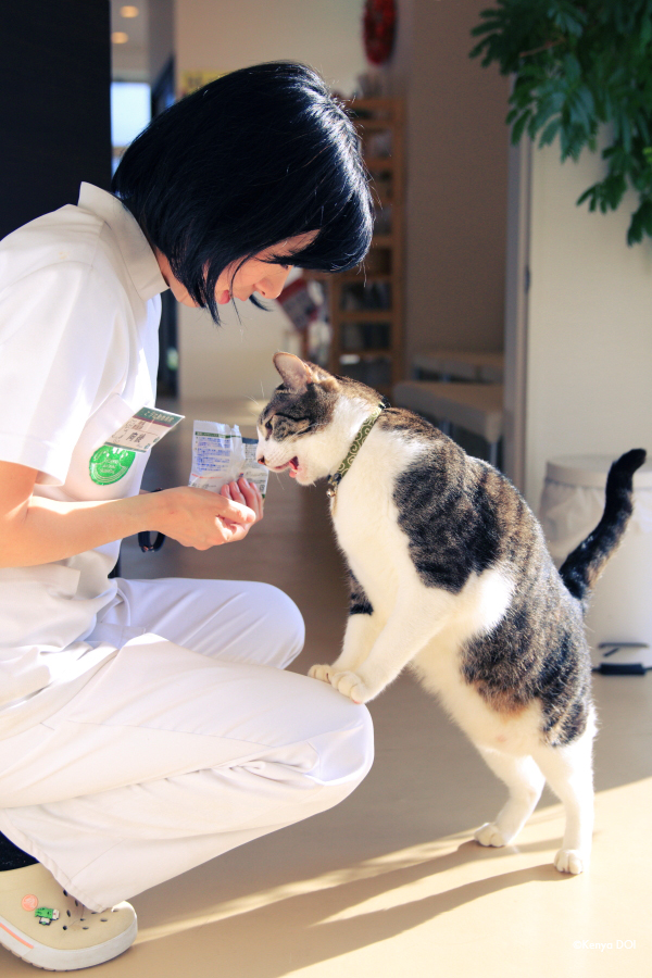 院長先生、もっとおやつ頂戴にゃー!