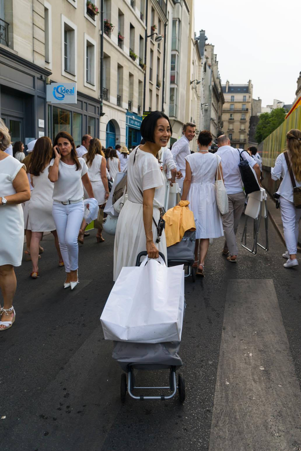 パリ在住のフリーアナウンサー、中村江里子さんも夫妻で毎年参加。大荷物です