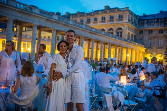 見渡す限り白1色のテーブルで、この日のために趣向を凝らした白い服装のマダムやムッシュー、楽団の人たちが楽しいときを過ごします。