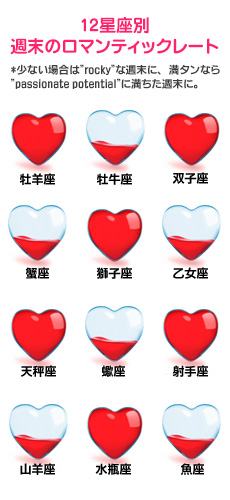 今週末、ロマンティックな時間は巡ってくるのでしょうか? アメリカで大人気の占サイトの日本語版「Tarot.com Japan」から、今週末の恋愛運をお届けします。星座ごとの恋愛運がわかるロマンティックなハートレート付きです!※こちらの記事に含まれる日付はアメリカ時間を基準にしています。日本では同日の午後から翌日の午後にあたります。 ⇒【12星座別週末のロマンティックレート】はこちら http://joshi-spa.jp/?attachment_id=490414 月が、今週末のほとんどを水瓶座で過ごすため、恋愛の色合いも変わってきそうです。友人として理解すること、もっと1人の自由な時間も深める努力が求められます。常に相手に溺れるよりもむしろ、自分らしさを上手に発揮して、相手との間に適度な距離を保つためです。 月がいつになく、週末の間ずっと良いアスペクトを保っているおかげで、積極的なバイブレーションが格段に増幅しそう。恋人と2人、社交的に楽しく過ごせそうです。募金募集イベントなど、人道的な場に出かけても良いでしょう。自分のニーズを離れて、より大きな意義に焦点を当てると、お互いの絆も深まりそうです。 <記事提供元サイト:Tarot.com Japan> Tarot.comはアメリカをはじめ世界中で愛される占いサイト。毎日の運勢や毎月の星占いから簡単にできる本格タロット占いまで、全て無料で楽しめます!