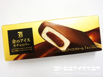 コンビニアイス評論家のアイスマン福留です。  今回ご紹介するのは、セブンイレブンのオリジナルブランド、「金の○○」シリーズでおなじみ、ワンランク上のおいしさを提供する”セブンゴールド”のアイスクリーム、「金のアイス生チョコバー」。  生チョコレート入りのバニラアイスをチョコレートで包んだ、チョコ好きには見逃せないアイスバーです。  ゴールドに輝く箱型パッケージ。シンプルで高級感のあるデザイン。アイスのイメージの他、種類別や内容量、カロリーなどもわかりやすく表示されています。 金のアイス生チョコバー 内容量は90ml、アイスバーとしては平均的なサイズです。  目指すのは、「ちょっとした贅沢」。最近は「プチ贅沢」として高級アイスを楽しむ人が増えているので、上記のコンセプトも、”金のアイス”というネーミングもぴったりですね! 金のアイス生チョコバー 箱から取り出すと、無地透明のビニール包装。 金のアイス生チョコバー 外側は、きめの細かいチョコレートコーティング。チョコレート好きにはたまらないビジュアル。 金のアイス生チョコバー 形状は、やや角の丸まった長方形。見た目はとってもシンプルです。 金のアイス生チョコバー 外側のチョコレートコーティングは、カカオ30%、甘さと苦味のバランスのとれた濃厚なカカオの味が楽しめます。  そして、中のバニラアイスがまたおいしい!  乳固形分17.3%、おいしいバニラアイスを追求し、こだわり抜いた結果、実現したプレミアムな味わい。卵黄をたっぷりと使い、濃厚なミルクのコクと風味が味わえます。  次は、本商品のメインと言える中央に入ったとろっとろの生チョコレート!複数のカカオ豆をブレンドした濃厚で深い味と、”とろける食感”がたまりません。 また、バニラアイスが濃厚なチョコレートの味にかき消されることなく、バランス良く絶妙に混ざり合うところがいい。一度食べたら病みつきになるおいしさです!恐るべし、セブンゴールド……。 金のアイス生チョコバー 種別はアイスクリーム規格。原材料はとってもシンプルです。販売は株式会社ロッテ、製造は大阪の株式会社ネージュ。 金のアイス生チョコバー 1本(90ml)あたりに含まれるエネルギーは305kcal。 金のアイス生チョコバー セブンゴールドの「金のアイス 生チョコバー」。名前だけではなく、味もゴールド級でした!! アイス好きにとって一度は食べておきたい商品です。生チョコレート好き、濃厚な冬アイスが好きな人には超おすすめ! 期待を裏切りませんよ。  価格は195円(税込)と、アイスバーとしてはちょい高めですが、それ以上の価値のある味です。見つけたらぜひ一度食べてみてください。 <TEXT・PHOTO/アイスマン福留> ⇒筆者の公式サイト「コンビニアイスマニア」はこちら http://www.conveniice.com/ 【アイスマン福留】 年間約1000種類のコンビニアイスを食べ、情報サイト「コンビニアイスマニア」を運営。今まで存在しなかった「アイス評論家」を勝手に名乗り、多くのメディアに取り上げられる。著書に『バカが武器』 ― アイスマン福留の「コンビニアイスマニア」女子SPA!出張版(16) ―