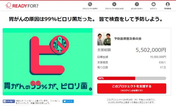 このピロリ菌撃退のために立ち上がったのが「予防医療普及委員会」(https://www.p-project.jp/)。発起人の一人は堀江貴文さんです。その他、チームにはピロリ菌感染症認定医の池澤和人医師、鈴木英雄医師、渡邊嘉行医師、間部克裕医師など、多数の専門家が参加しています。