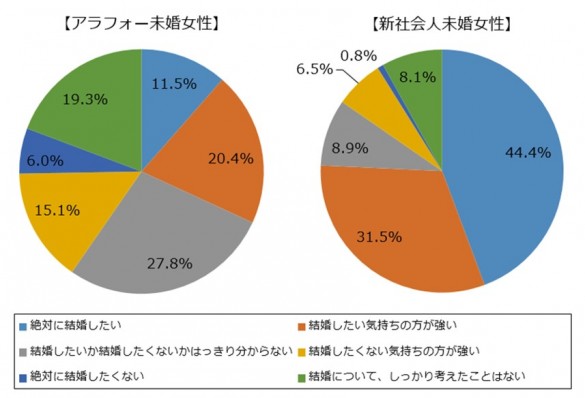 アンケートでは、アラフォー女性の15.1%が「結婚したくない気持ちの方が強い」、6.0%が「絶対に結婚したくない」と回答。約2割の女性たちが結婚「しない」と考えていることがわかります。