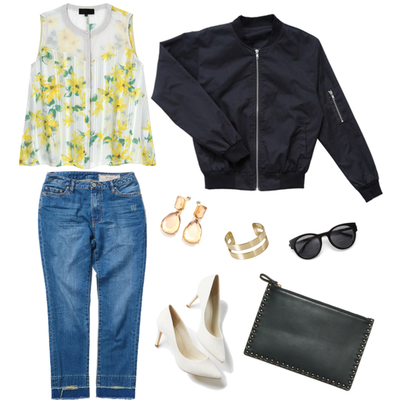 ボーイッシュデニムをチョイスPONTEスタイリスト:freedomrose トレンドのMA-1ジャケットとも相性バツグン! 少し甘めのボタニカル柄トップスに、引き締めカラーのミリタリージャケットを合わせて、クール&フェミニンに。 旬のクラッシュデニムなどハードめなアイテムに合わせれば、大人のカッコよさを演出できます!