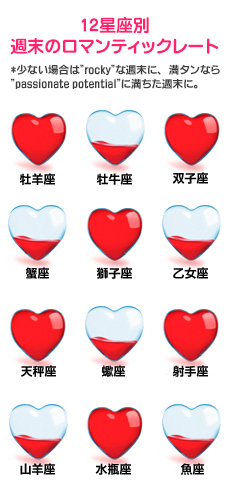 今週末、ロマンティックな時間は巡ってくるのでしょうか? アメリカで大人気の占サイトの日本語版「Tarot.com Japan」から、今週末の恋愛運をお届けします。星座ごとの恋愛運がわかるロマンティックなハートレート付きです!※こちらの記事に含まれる日付はアメリカ時間を基準にしています。日本では同日の午後から翌日の午後にあたります。 ⇒【12星座別週末のロマンティックレート】はこちら http://joshi-spa.jp/?attachment_id=519087 理想を追い求める射手座で土曜日に起こる満月が、人生の最高の楽しみへとあなたを駆り立ててくれます。たとえ、まずは極めて重要な何かを変える必要があると認めているにしても。また、恋愛についても新しいレベルで気付きがありそうです。一方で、日曜日にはその問題意識と折り合いをつける上で多少の抵抗を感じるかもしれません。同時に、物事がはっきりとしているのは必ずしも気分の良いものではないと思うでしょう。 太陽と火星のオポジションに続き、水星が順行に戻るのは日曜日です。あなたが感じた問題は、前向きに変わる事で乗り切るでしょう。覚醒はもうすぐ。それがロマンティックかどうかは、目覚めた時に目に入るもの次第です。 <記事提供元サイト:Tarot.com Japan> Tarot.comはアメリカをはじめ世界中で愛される占いサイト。毎日の運勢や毎月の星占いから簡単にできる本格タロット占いまで、全て無料で楽しめます!