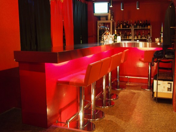 ドキドキを抑えつつ重厚な鉄の扉を開けると、目の前に広がるのは赤を基調とした店内。拘束台などが鎮座する「いかにも!!!」な雰囲気を想像していたけれど、カウンターを中心とした20席ほどの空間が広がっているだけで、一見バーやクラブと何ら変わりない……。