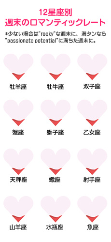 今週末、ロマンティックな時間は巡ってくるのでしょうか? アメリカで大人気の占サイトの日本語版「Tarot.com Japan」から、今週末の恋愛運をお届けします。星座ごとの恋愛運がわかるロマンティックなハートレート付きです!※こちらの記事に含まれる日付はアメリカ時間を基準にしています。日本では同日の午後から翌日の午後にあたります。 ⇒【12星座別週末のロマンティックレート】はこちら http://joshi-spa.jp/?attachment_id=527601 今週末は厳しい恋愛の現実が、なんとか無視しようとしても、いやに目立つものとなってきそうです。金曜日、金星と海王星のスクエアががっかりするような出来事へと導くかもしれません。現在進行中のロマンスのもつれを、ずっと思い違いしていたと気が付く可能性もあるでしょう。 問題は、同じ日に太陽と金星もまた土星とオポジションとなり、あなたに自力で進むようしむけてくる事です。できたかもしれないと想像にふけるのではなく、現実的になる必要が出てきます。恋愛には苦しい時もあるでしょう。今週末、はっきりさせなくてはいけないのは、「あなたの気持ち」です。この恋愛に労力をかける気があるのか、ないのか。いずれにしろ、自分を偽り続ける事はできません。 <記事提供元サイト:Tarot.com Japan> Tarot.comはアメリカをはじめ世界中で愛される占いサイト。毎日の運勢や毎月の星占いから簡単にできる本格タロット占いまで、全て無料で楽しめます!