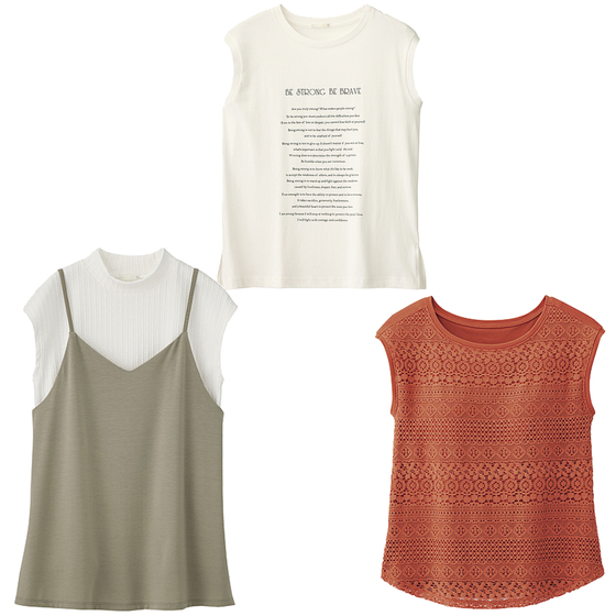 上下1万円1週間コーデのアイテムグラフィックT 390円(税抜) ブラフィールフロントレース 1,490円(税抜) キャミソールレイヤードT 1,990円(税抜) ⇒【写真】はコチラ http://joshi-spa.jp/?attachment_id=542075