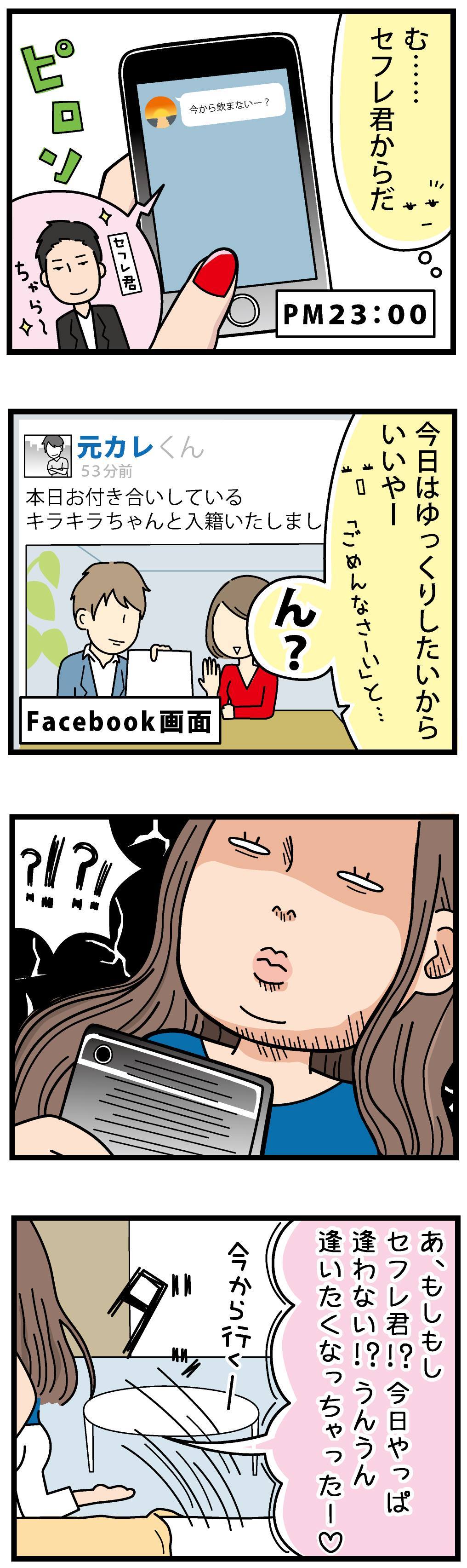 ③彼氏が浮気した時「Facebookで元彼の結婚報告を見た時! 一瞬、頭が真っ白になる程ショックでした。彼へのあてつけではないけど、セフレの男に連絡をしてホテルに行きました」(29歳/デザイナー) 一番多かった理由は、元彼の結婚を知った時! 以前真剣に付き合ってた人を、一生失うようなあの感覚…。胸がざわついた経験がある人も多いのでは? 結婚相手のプロフィールをSNSで探ってさらに打ちのめされたり…。 悔しいような、ショックなような…落ち込んだ時は、セフレと会って寂しさを紛らわすに限る!?