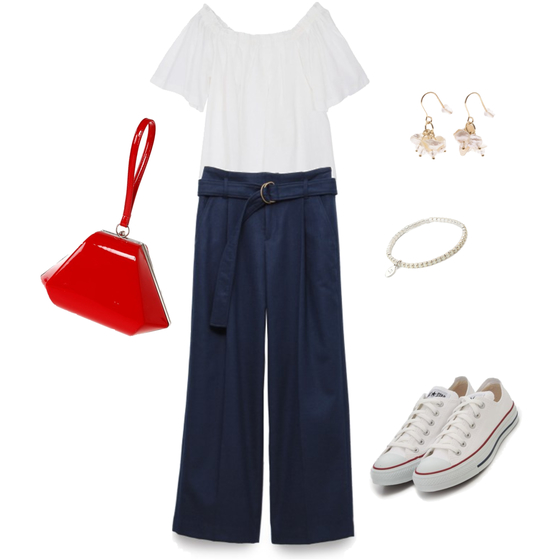 ちょっぴりセクシーならシニヨンサイドをくるくるして低めの位置でくるりんぱ♪ストライプのリボンクリップでとめれば、簡単“シニヨン”の完成。ルーズな毛束もセクシーですね。 ♪Ponteおすすめシニヨンにぴったりコーデ♪ ⇒【写真】はコチラ http://joshi-spa.jp/?attachment_id=557072PONTEスタイリスト:yoko オフネックのノースリは、襟デザインを生かしたアップスタイルがオススメ♪スニーカーにバックパックのメンズライクな組み合わせに、女らしさを。