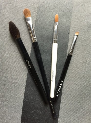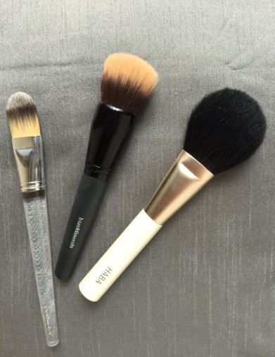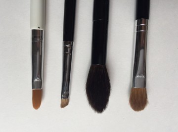 まず、欲しいのは、フェースブラシ、これはもちろんみなさん持っているでしょうが、もし、もう一本お買いになるなら、少し毛の短めの人工毛をそろえるといいでしょう。