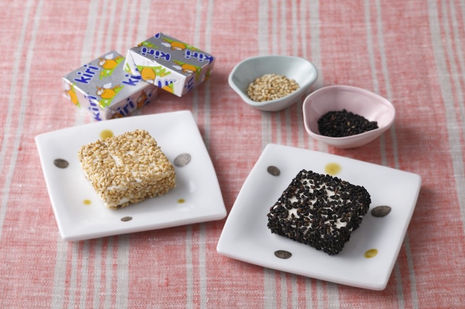 クリームチーズ一個に対し、ごまをまぶすだけ。白ごま、黒ごま、なんでも合う