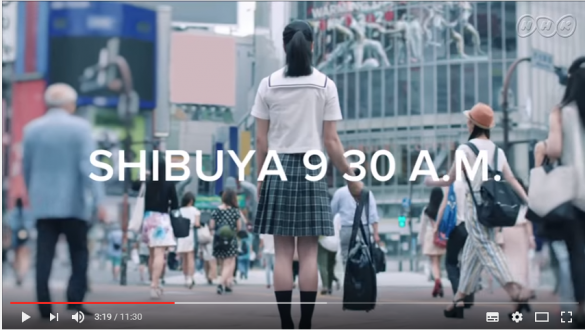 映像全体では競技するアスリートと東京の観光名所が合成された映像になっていてとても良かったのですが、その冒頭部分は制服姿の女子高校生が渋谷のスクランブル交差点にいるところから始まります。そう、またお決まりの「制服姿の女子高校生」です。