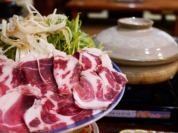 最初にご紹介するのは、蓼科グルメの中で、私がダントツに好きなお店。厚切りのイノシシ肉をたっぷり食べられる「ぼたん鍋」のコースです。