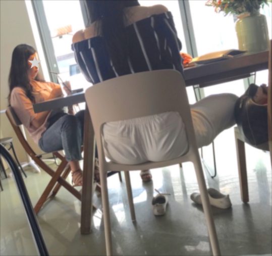 「ねーっ、ちょっとあの隣の豚を見て」と、そっと目配せされた方向に目をやると、靴を脱いで椅子の上であぐらをかいている女子がいたの!