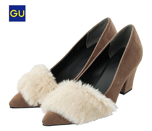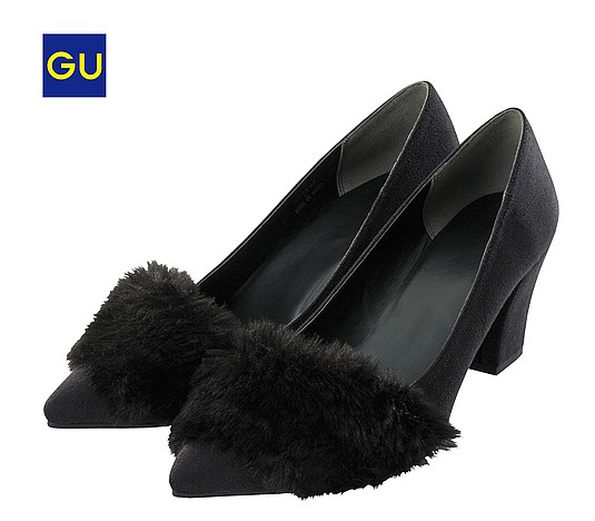 GU新作のファーパンプス※画像:GU ブラックのワントーンタイプ。定番の合わせやすいカラーはとっても便利。クールにも履けるし、悩んだらブラックにしよう! ♪ベージュ♪ ⇒【写真】はコチラ http://joshi-spa.jp/?attachment_id=591051