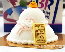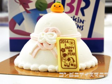 こんにちは。コンビニアイス評論家……ではなく、今回はアイスクリーム評論家 ・アイスマン福留です。最近は冬に食べるアイス「冬アイス」が、じわじわと盛り上がりをみせています。そう、アイス好きにとって、あたたかい部屋でアイスクリームを食べている時こそ至福の時間。 冬季限定商品や、クリスマス限定のアイスケーキの種類も増えてきていますが、年明けにぴったりな「お正月アイス」っていうのは……今まであまり聞きませんでした。 しかし、アイス好きにとって元旦の「初アイス」はとても重要です。どんなアイスを食べるかで、その年の”アイス運”を左右する大切な日ですからね! そして、見つけました!! 素敵なアイスまみれな一年を過ごすための縁起の良い「お正月アイス」を。 それは、B-R サーティーワンの鏡もちアイスクリームケーキ(数量限定)です。現在、サーティワンアイスクリーム各店(一部店舗をのぞく)で、「鏡もち」をかたどった「鏡もちアイスクリームケーキ」の予約受付が行なわれているんです。 そして、入手してしまいました! 鏡もち型アイスクリームケーキ! 12月31日までに予約をすると、1月1日以降、各店舗にて受け取ることができます(年内に受け渡しをご希望の場合は、予約の各店舗までお問い合わせください)。 「鏡もちアイスクリームケーキ」。正月気分を思いっきり演出してくれます。うーん、「鏡もち」ならぬ「鏡アイスケーキ」。 ビジュアルも紅白の水引を模したデザインで、とにかくめでたい! 天辺には、ダイダイ型のかわいい飾り菓子がチョコンと乗っています。そして、「2014 A HAPPY NEW YEAR」の文字が刻まれたホワイトチョコ。 食べるのがもったいない!