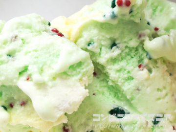 上部は定番の「バニラ」、台側は人気ナンバーワーンフレーバー「ポッピングシャワー」。そのアイスを包むように、ホイップクリームで綺麗に仕上げられています。 食べてみると…… うまぁあぁあい!!! 感動のおいしさ。数秒目が開かなくなるぐらいおいしいです。 甘くてなめらかな口溶けのホイップクリーム。内側の濃厚でコクのあるバニラアイスクリームと外側のホイップクリームが混じりあい、アイスクリーム単体では味わえない「アイスクリームケーキ」の上質な味わいが楽しめます。 さらに食べすすめると、ポッピングシャワーフレーバーが登場! 口の中でポップロックキャンディがパチパチと元気よく弾けます。このパチパチ感……クセになるんですよね。