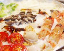白菜、トマト、きのこ、白身魚(鯛・ヒラメなど)、エビ・カニ、貝類(ホタテ・アサリなど)