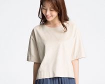 ドロップショルダーでボディラインを拾わず、上半身を華奢に見せてくれます。アームホールは広めで、二の腕のカバーにも最適です。