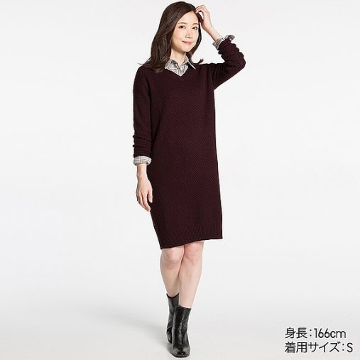 ミドルゲージニットVネックワンピース(長袖) 3,990円(ユニクロ)